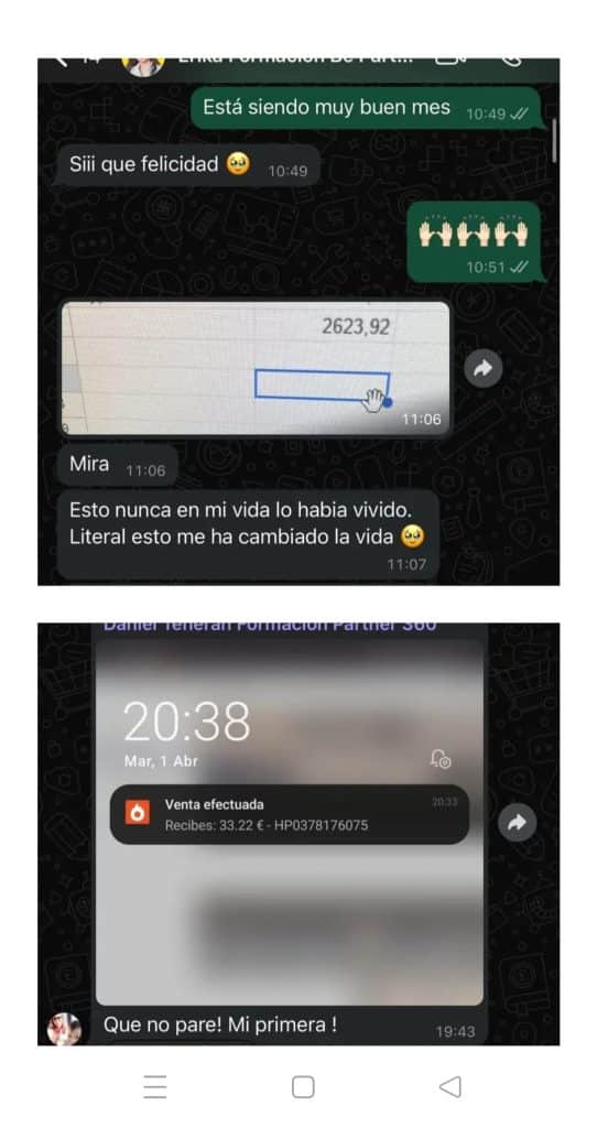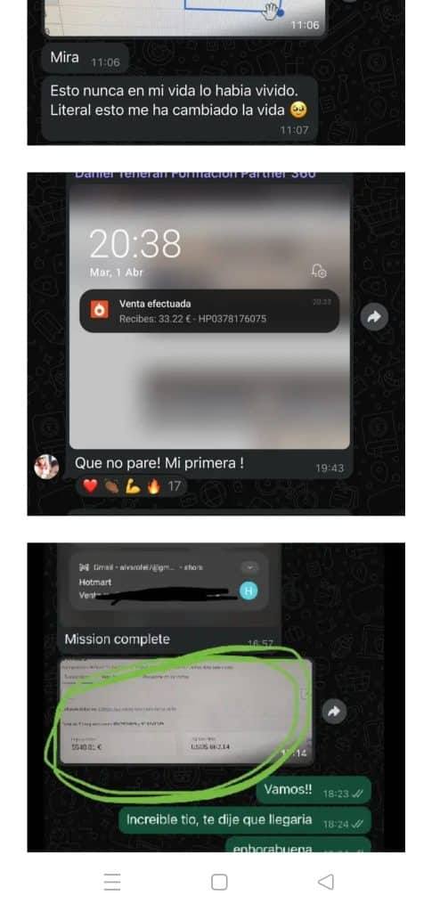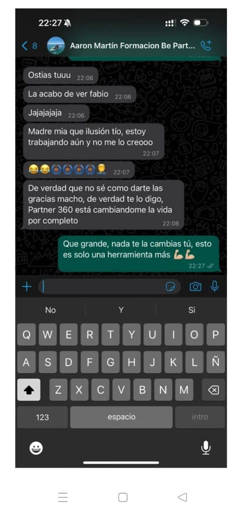 Estos casos de éxito, junto con la constante evaluación positiva en la comunidad de WhatsApp, reflejan la eficacia de la formación Partner 360.