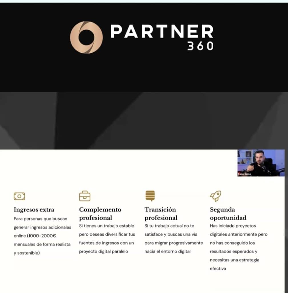El curso Partner 360 es una formación completa que te guía desde cero hasta convertirte en un experto, combinando mentorías en vivo, llamadas directas con los alumnos y material grabado.
