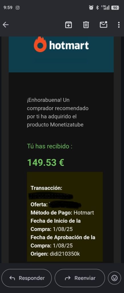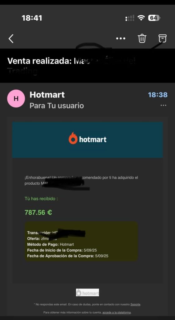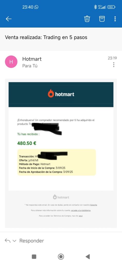 Erika, ex alumna del curso Partner 360, edición 2024, cuenta como apenas empezar a aplicar en el marketing de afiliados y gracias a la formación, obtuvo su primera comisión, de nada más y nada menos de 400€.✨